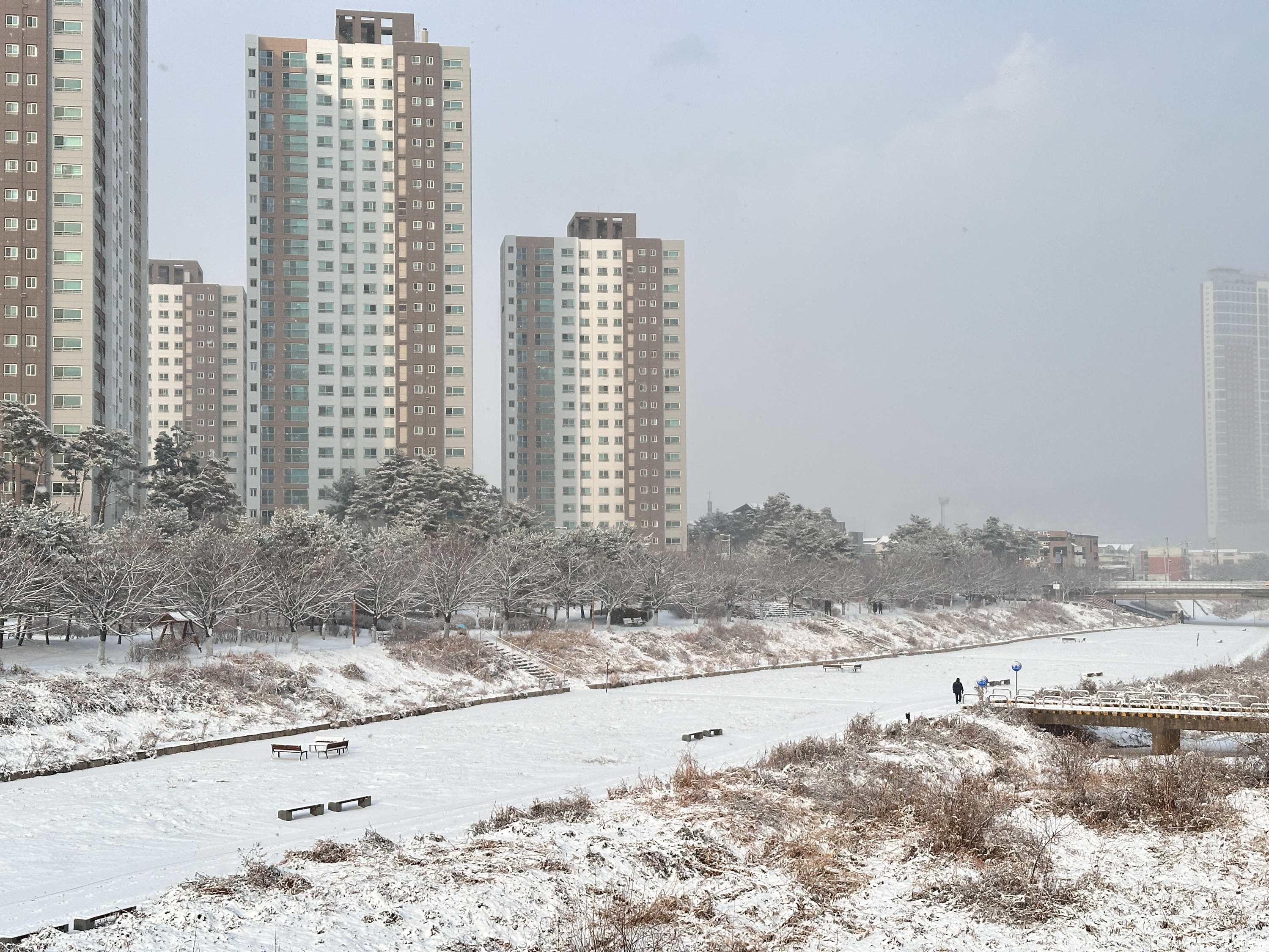 고양 창릉천 산책로 하얀 설경 한파 속 폭설